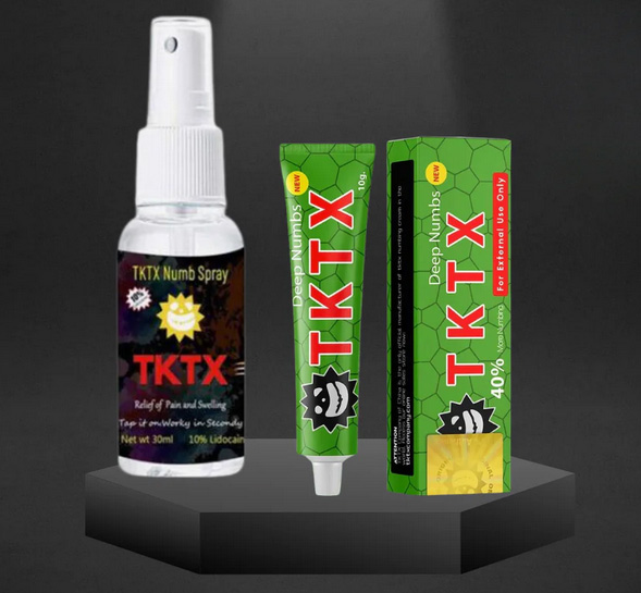 „Wer sich tätowieren lässt, kennt die Schmerzen, die je nach Körperstelle und persönlichem Schmerzempfinden unterschiedlich stark ausfallen können. Um den Vorgang angenehmer zu gestalten, greifen viele Kund*innen auf Betäubungsmittel wie die TKTX Betäubungscreme, das TKTX Spray oder Lidocain-haltige Produkte zurück. Diese können helfen, die Hautpartie lokal zu betäuben und das Tattoo-Erlebnis deutlich angenehmer zu machen..“